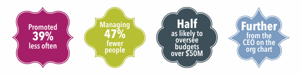 - No sponsorship. Nearly half of women don’t have someone in the room saying “she should run that project.” More men do.