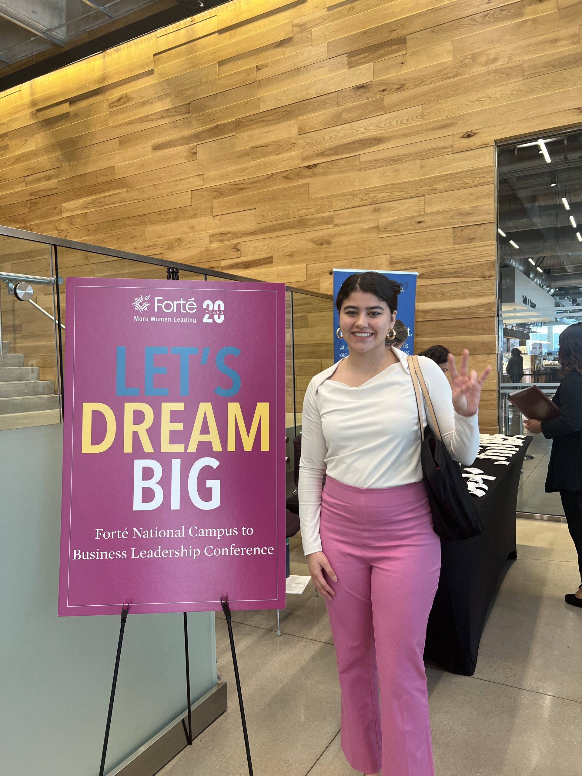 This year, Forté held a Next Step Contest for our community of undergraduate women who shared a picture of what their next step is after college. Whether it's a summer internship, business school, or just taking a well-deserved vacation! We had so many amazing applicants so we decided to add another winner. The five winners are Gigi Oyola from George Washington University, Jasselle Garcia from Smith College, Esther Xiang from Harvard College, Angelica Bolaños from the University of Houston, and Aesha Mehta from Rutgers Business School - New Brunswick!