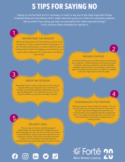 - Saying no shows others that you know what your priorities are. Setting boundaries and being able to prioritize are characteristics that demonstrate your ability to lead.