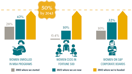What a milestone year for Forté! We celebrated our anniversary in several different ways this year, from a “Cheers to 20 Years” virtual toast in April to a cake and champagne reception at our annual partner meeting and five “Rise and Rally” fundraising events in Boston, Chicago, Pittsburgh, San Francisco, and New York City. Each celebration was an opportunity to connect with members of our community, reflect on how far we’ve come, and discuss how we continue building the talent pipeline to get more women leading. After two decades of work to improve gender diversity in business schools, the landscape for women in this space has undergone a shift. Women's full-time enrollment in MBA programs is now at 42%, 10% of Fortune 500 CEOs are women, and 32% of S&P 500 company board seats are held by women. The progress is real, and the change is palpable.
